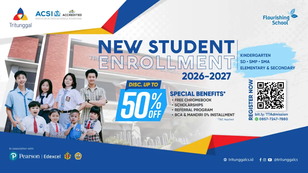 Mari bersama Sekolah Kristen Tritunggal mempersiapkan pendidikan yang terbaik untuk putra-putri kita dengan memberikan ekosistem pendidikan Kristen yang berkualitas.